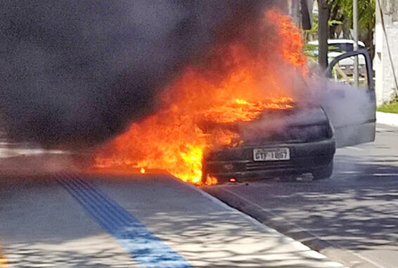 Na manhã desta terça-feira (10), um automóvel Fiat Tipo de cor cinza e placa GTF-1867, licenciado em Porto Seguro-BA, pegou fogo enquanto trafegava pela Av. Aziz Maron, na região central de Itabuna, nas imediações do Shopping Jequitibá.