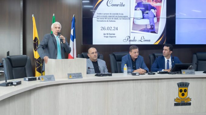 A trajetória do jornalista Paulo Lima, um dos oradores mais famosos de Itabuna, ganhou sessão especial na Câmara. Proposto pelo vereador Israel Cardoso (Agir), o ato celebrou os 80 anos do profissional, cuja atuação é aplaudida por onde ele passa.