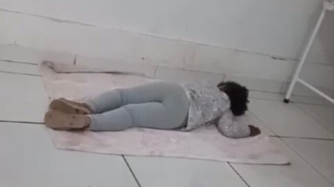 No vídeo, uma criança de apenas 02 anos de idade, aguarda atendimento na UMMI (Unidade Municipal Materno Infantil) de Teixeira de Freitas, deitada no chão.