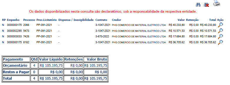 Contratos referentes a PHG COMÉRCIO DE MATERIAL ELÉTRICO LTDA