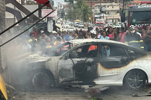 Um homem morreu carbonizado na tarde desta quinta-feira (29) em Itaparica, na Região Metropolitana de Salvador. O carro que a vítima conduzia pegou fogo após perseguição com a Polícia Militar.