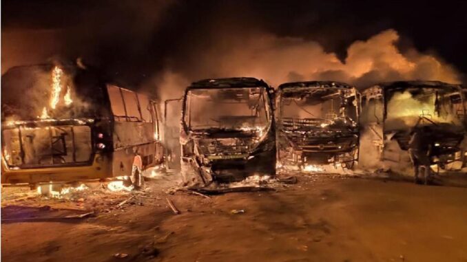 Um incêndio na garagem da prefeitura de Barra do Choça, no sudoeste baiano, destruiu sete ônibus, uma van e duas motos na madrugada desta quarta-feira (9). Ninguém ficou ferido, segundo informações da Polícia Militar, entretanto os veículos ficaram destruídos.