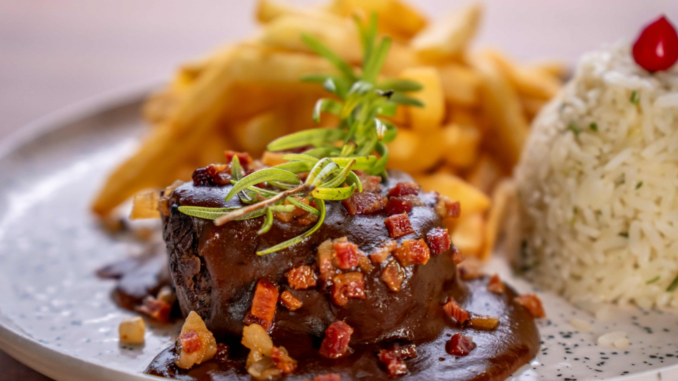O Restaurante Pé na Areia do Village Itaparica estreia no Festival Tempero Bahia 2025, que acontece de 28 de agosto a 7 de setembro apresentando o prato Filé Mignon ao molho de barbecue de umbu com batatas-fritas. Inspirada no tema desta edição “Biomas da Bahia: Caatinga”, a receita assinada pelo Chef vera-cruzense Edmar Ferreira, combina a maciez da carne com o sabor agridoce do umbu, fruto típico do sertão baiano, trazendo uma releitura criativa e regional para um clássico da gastronomia.