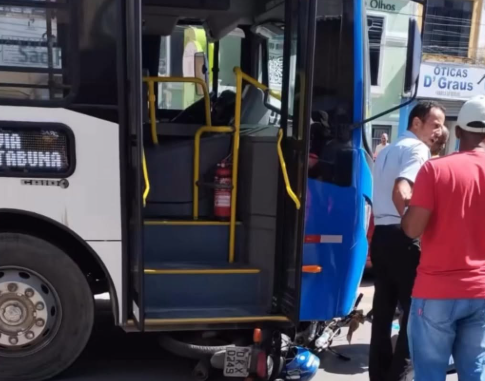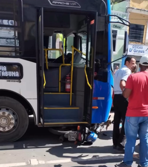 Um acidente registrado por volta das 09:30 da manhã desta sexta-feira (5) causou transtornos no trânsito do centro de Ilhéus. De acordo com imagens enviadas à redação, uma motocicleta ficou presa embaixo de um ônibus, chamando a atenção de quem passava pelo local.