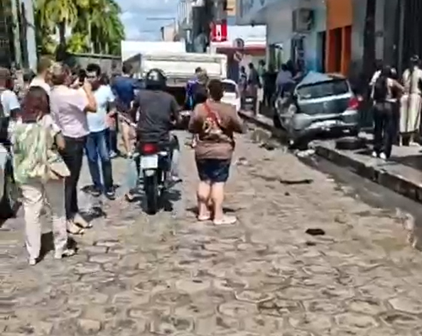 A caçamba VW branca, de placa NYX-0C31, avançou desgovernada e atingiu seis veículos que estavam estacionados, além de causar danos às fachadas de duas empresas localizadas em um trecho próximo ao antigo Banco do Brasil. As imagens divulgadas evidenciam a dimensão dos estragos e a força do impacto causado pelo caminhão.