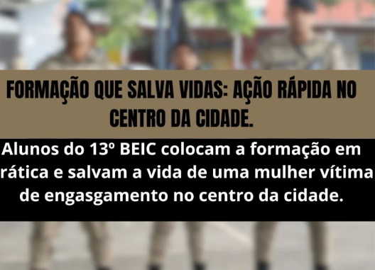 Por volta das 15h, enquanto realizavam Policiamento Ostensivo a Pé nas imediações do Mercado Municipal, os alunos foram acionados por populares relatando que uma mulher estava passando mal, apresentando sinais de engasgamento.