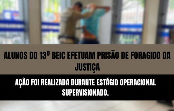 Na manhã desta segunda-feira (14/01), durante patrulhamento nas imediações do Shopping Teixeira Mall, a patrulha composta pelos alunos do Curso de Formação de Soldados do 13º BEIC – Al SD PM Falcão, Al SD PM Figueiredo e Al SD PM Santos Cruz – foi acionada pela CICOM com a informação de que um indivíduo com mandado de prisão em aberto teria sido visto entrando em uma agência da Caixa Econômica Federal.