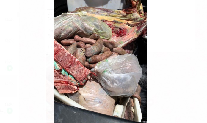 A fiscalização encontrou as carnes e os embutidos acondicionados, inapropriadamente, em bandejas e caixas plásticas de açougue estragadas, em de bandejas enferrujadas ou em embalagens plásticas sujas, com graves riscos para a saúde da população se acaso fossem consumidas. Por isso, todos os produtos foram apreendidos, retirados do açougue na carroceria de veículos utilitários da Secretarial Municipal de Saúde para serem incinerados.