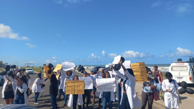 Enfermeiros, auxiliares e técnicos realizaram uma manifestação na manhã de ontem (05), em Ilhéus, contra suspensão do piso salarial. O trajeto da BA-001 que dá acesso a nova ponte e zona sul foi bloqueado.
