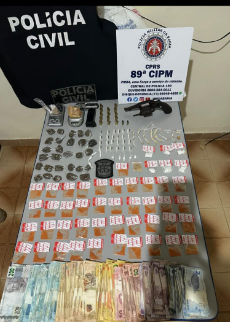 Na data de 25.01.2023, a Policia Civil juntamente com a Policia Militar através de prepostos da PM de Posto da Mata e PETO, em ação conjunta, prenderam em flagrante as pessoas de L.G. DE J. F., S. DE J.e M. L. L., pela pratica dos crimes de Trafico de Drogas, Posse Irregular de arma de fogo e Receptação. Fato ocorrido no distrito de Posto da Mata.