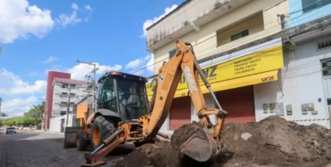 A equipe responsável, no momento, realiza a escavação de valas na rua Antônio Chicon Sobrinho para a inserção dos tubos PEAD e a confecção do poço de visita. Pela manhã, houve a sondagem da rede de drenagem existente na rua Mauá, analisando sua extensão para evitar imprevistos durante a escavação do trecho.