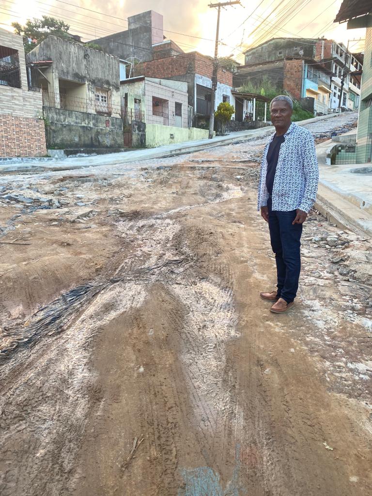 Uma obra que já se arrasta por quase um ano, de péssima qualidade e que vem causando diversos transtornos para os moradores. Assim é o serviço de pavimentação que vem sendo feito rua São Francisco, no bairro da Conquista, e que era o principal acesso ao Hospital Materno-Infantil, mas que hoje está interditada, com esgoto correndo a céu aberto, sem coleta de lixo e com a lama escorrendo para as casas dos moradores.