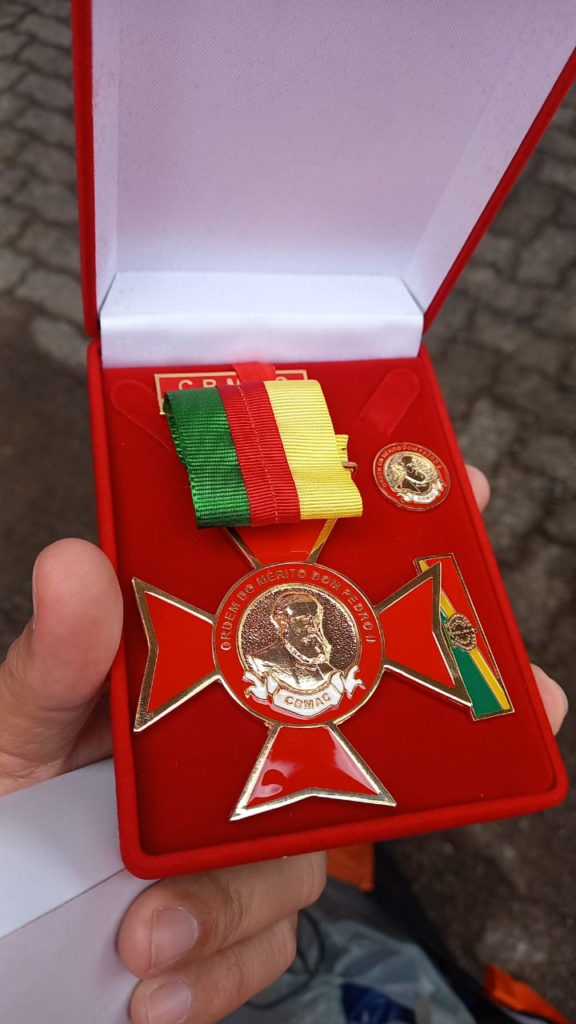 Esta honraria é concedida àqueles com grandes serviços prestados à sociedade. O tenente-coronel agradeceu via redes sociais ” Agradecer ao @cbmac.oficial e a seu Excelentíssimo Senhor Comandante Geral @charlesbmsilva pela concessão da ORDEM DO MÉRITO D. PEDRO II que muito honra a minha carreira!”